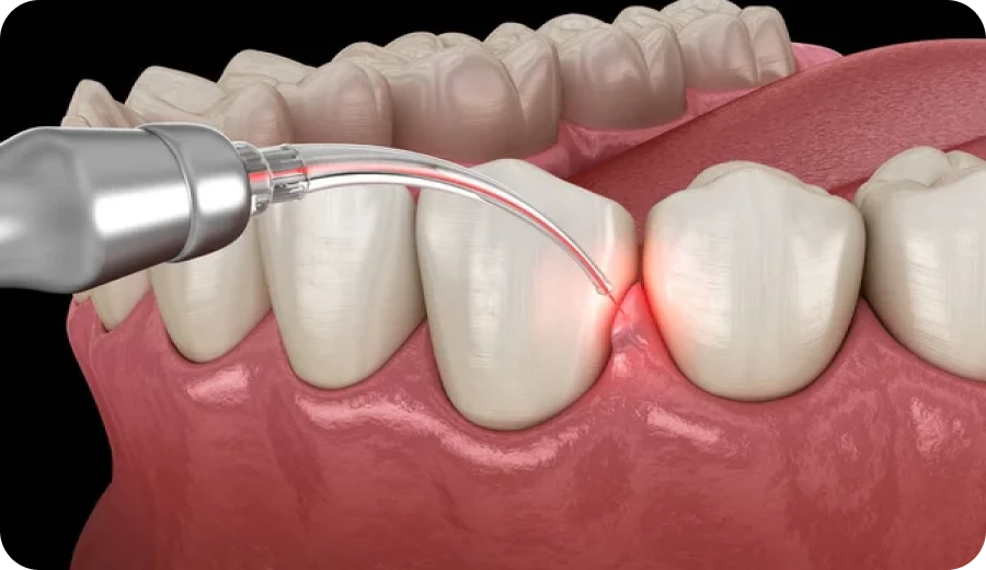 Un laser Er:YAG a été utilisé pour le traitement parodontal et implantaire. Ce laser est idéal pour traiter les tissus mous et durs avec précision. Il aide à éliminer les bactéries et stimule la cicatrisation des gencives.