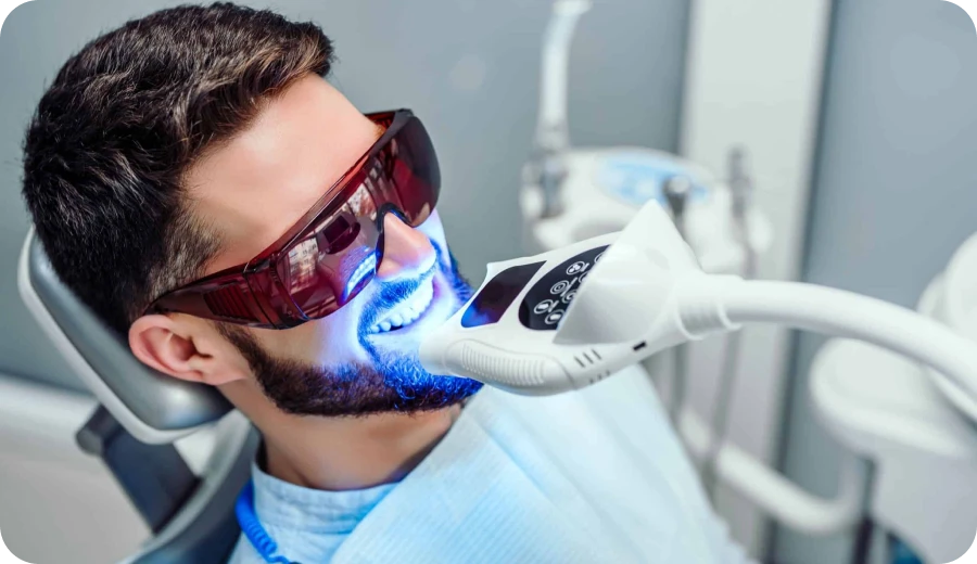 Lors du traitement, un gel blanchissant est appliqué sur les dents. Une lampe LED ou un laser active le gel pour accélérer le processus. La durée moyenne de la séance varie entre 30 minutes et une heure, selon la technique utilisée.