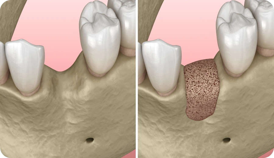 Lors de l’intervention, une incision est pratiquée pour accéder à la zone cible. Le praticien place la greffe osseuse et la stabilise avec une membrane. Cette dernière empêche les tissus mous d’envahir l’espace osseux. La procédure se fait sous anesthésie locale et dure environ une heure.
