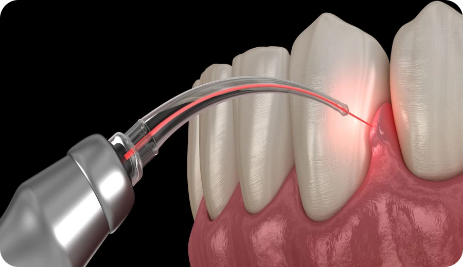 Avant d’utiliser le laser, un nettoyage préliminaire est réalisé pour éliminer la plaque et le tartre. Le laser est ensuite appliqué directement dans les poches parodontales pour :